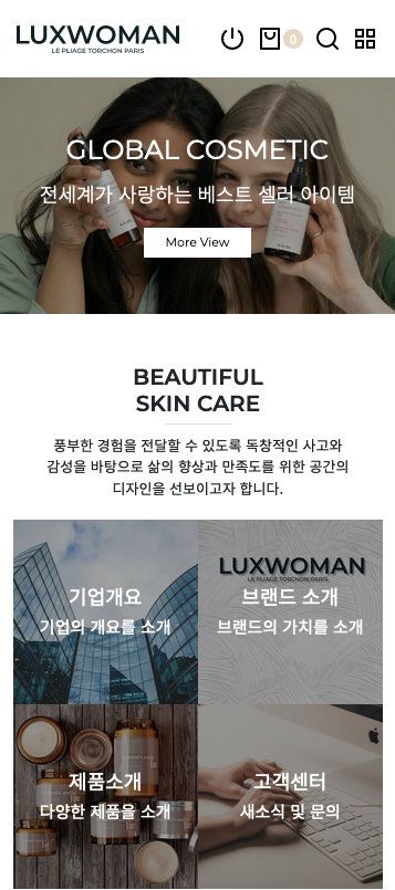 - 해당 테마는 사이드 레이아웃을 사용하지 않는 디자인이며 비반응형을 지원하지 않습니다.